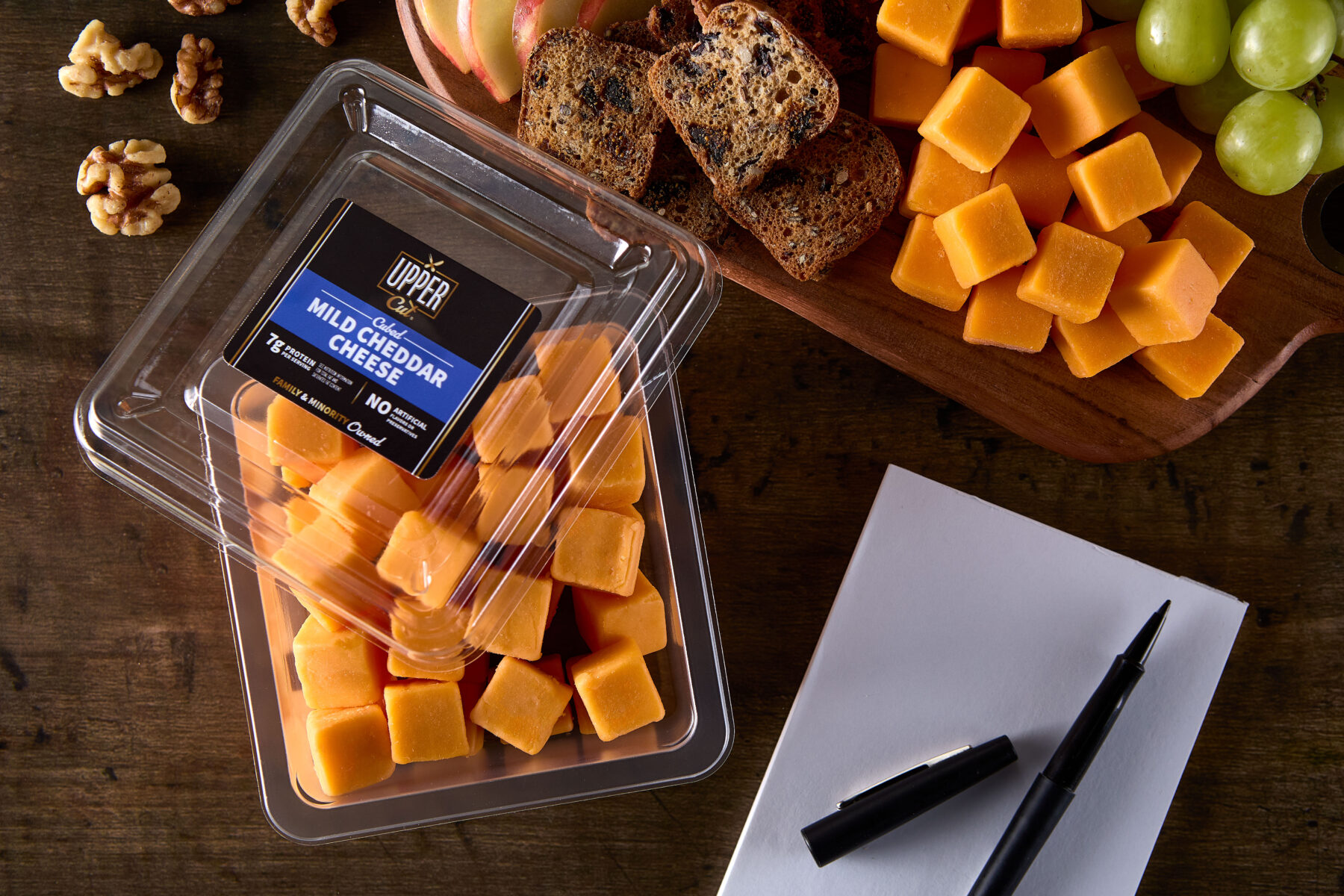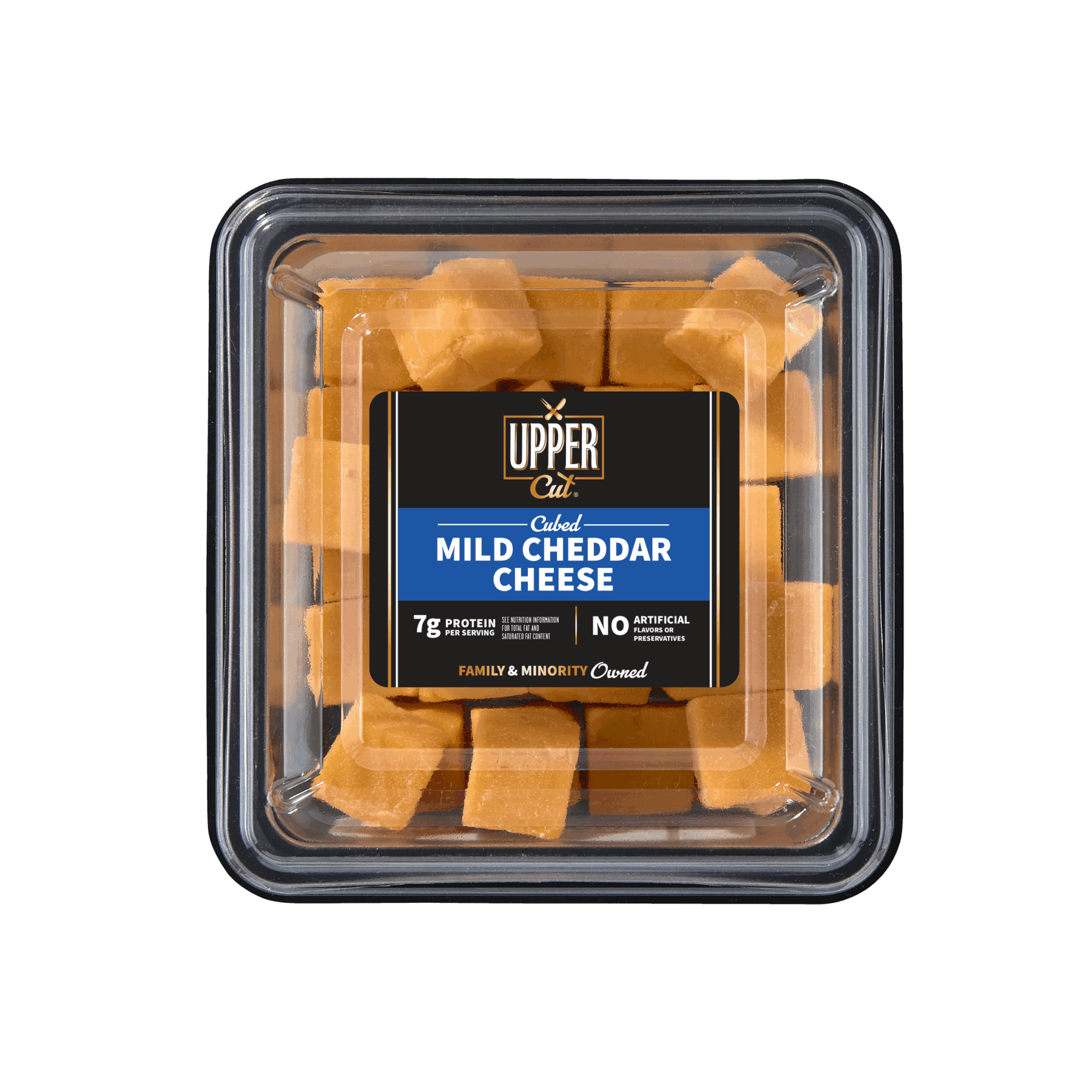6 oz (170g) | 6 servings | 42g protein per containerSmooth, creamy, and mellow, our Mild Cheddar Cheese Cubes offer a classic flavor that’s perfect for snacking or cooking. Adored by cheese lovers of all ages it's a satisfying choice for a snack or to add to your favorite recipes.